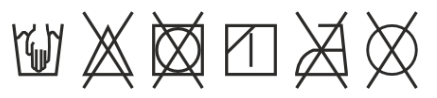 Lavagem a mão. Temperatura máxima 40ºC, não alvejar, não secar em tambor, secagem em varal à sombra, não passar, não limpar a seco.